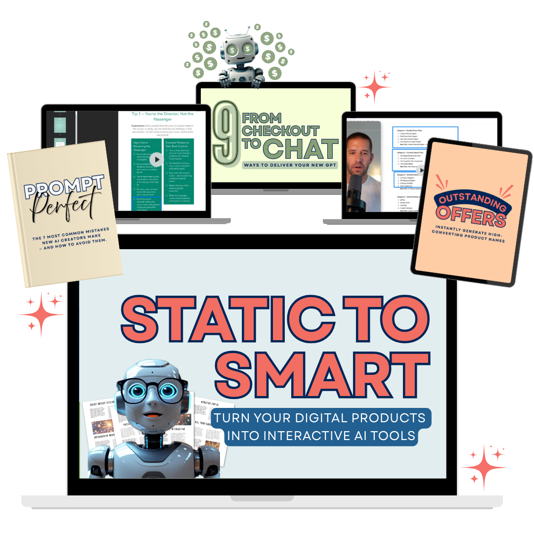 🔴Your GPT AI tool that you created (using Static to Smart) will guide them step-by-step through your process and your content is now interactive and much more valuable to your customer!
